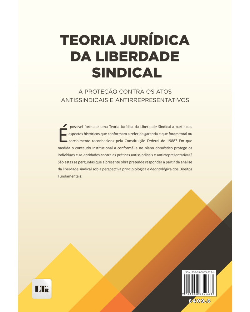 A presente obra esboça uma Teoria Jurídica da Liberdade Sindical calcada nas premissas (i) de que a referida garantia constitui, em sua essência, uma instituição reconhecida nos pactos internacionais de Direitos Humanos e na maior parte dos ordenamentos jurídicos de cunho democrático que é dotada de conteúdo histórico-institucional e de força normativa e (ii) de que tal característica, típica dos princípios, permite o delineamento dos aspectos individuais e coletivos que integram o conteúdo jurídico da liberdade sindical e que orientam a definição de seu sentido e alcance diante dos casos concretos submetidos à análise dos intérpretes e aplicadores do Direito, especialmente naqueles que envolvem a prática de atos antissindicais e antirrepresentativos.