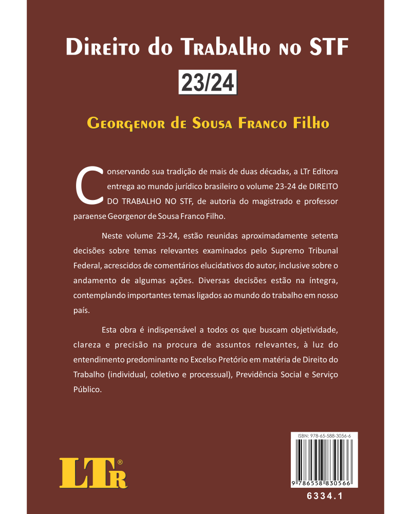Seu autor, o Prof. Georgenor de Sousa Franco Filho, que também é magistrado trabalhista de carreira, vem fazendo a seleção e inserindo comentários nos principais julgados do STF nesta que é uma das mais tradicionais obras que a LTr publica há mais de duas décadas.