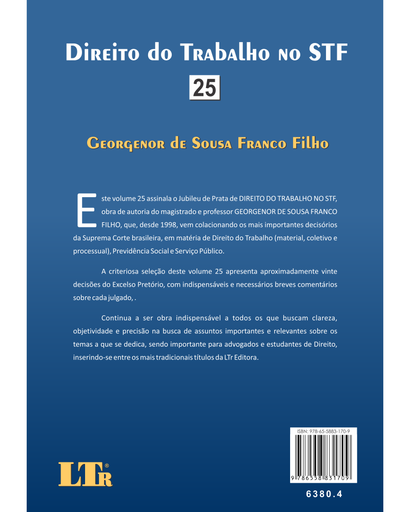 A obra faz uma seleção cuidadosa destacando os mais relevantes e significativos julgados do Supremo Tribunal Federal no ano de 2021 e representam o entendimento do STF sobre direito individual, direito coletivo, direito processual do trabalho, servidor público e previdência social.